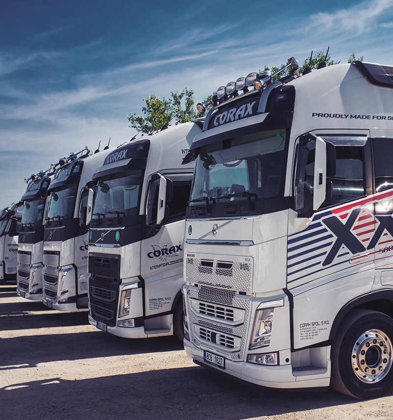 We are Corax spol. s.r.o., a transport company with tradition since 1994. Since the beginning we try to move forwards constantly. Our dynamic growth is proved by the gradual extension of provided services range. Our company owns 100 Volvo trucks. We provide transport throughout Europe as well as outside Europe.